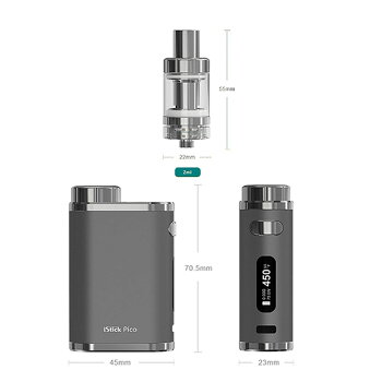 使用方法 【電源ON/OFF】 ・Fireボタン5回早押し 【モード切替】 ・電源ON状態でFireボタン3回早押しでモード選択状態 ・底面の+-ボタンでモード変更 ・Fireボタンで決定 【設定値変更】 ・電源ON状態で底面+-ボタン 【TCモードでのW変更】 ・TCモード電源ON状態でFireボタン4回早押し ※初期設定は75Wですのでまずは20W位から徐々に上げて調整してください 商品詳細 Eleaf iStick Pico 75W商品詳細 ○ 本体 : H70.6mm×W23.3mm×D45.2mm ・ 可変ワット数:1-75W ・ 温度制御範囲:200F-600F/100ºC-315ºC ・ 標準対応抵抗値:0.1-3.5ohm ・ 温度管理時抵抗値:0.05-1.5ohm ・ 出力モード:Wattage(VW)/Bypass/TC(Ni,Ti,SS,TCR-M1,M2,M3) ・ 18650サイズのバッテリー1本使用 ○ アトマイザー(MELO III mini) ・ サイズ :H55.1mm×Φ9.2mm ・ タンク容量:2.0ml ・ エアフロー機能搭載 ・ トップリフィル構造 Flex01 10ml 4味セット商品詳細 〇 リキッド容量:10ml 〇 主成分:植物性グリセリン/プロピレングリコール/香料 〇 配合:PG30%/VG70% 〇 生産国:MADE IN PRC 商品内容 〇Eleaf iStick Pico Mod (イーリーフ アイスティック ピコ) 本体×1 〇アトマイザー(MELO III mini)×1 〇Eleaf ECコイル 0.3Ω(プリインストール) 〇Eleaf ECコイル 0.5Ω 〇 USBケーブル × 1 〇 マニュアル × 1 〇 保証カード × 1 〇 警告カード × 1 〇 18650 MURATAセル VTC5バッテリー×1 〇 Flex01 10ml 4味セット × 1 ※ 注意事項 ・商品ロットによって同梱内容物が一部異なる場合があります。